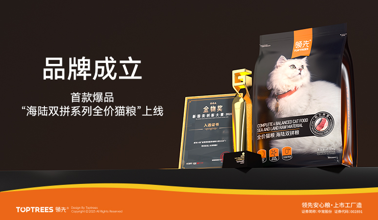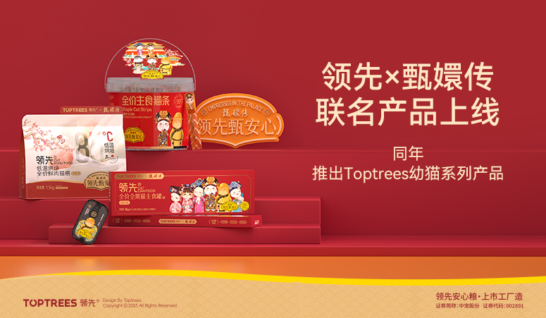 TOPTREES领先®致力于为每一位宠物家长及毛孩子们营养健康寻找解决方案,工厂由国内宠物食品首家上市企业中宠股份全资建设。采用国际化高端设备,严遵国际宠物食品研发标准,原材料可追溯,无菌安全生产,产品端口做到真正的“有品质、敢透明”。
